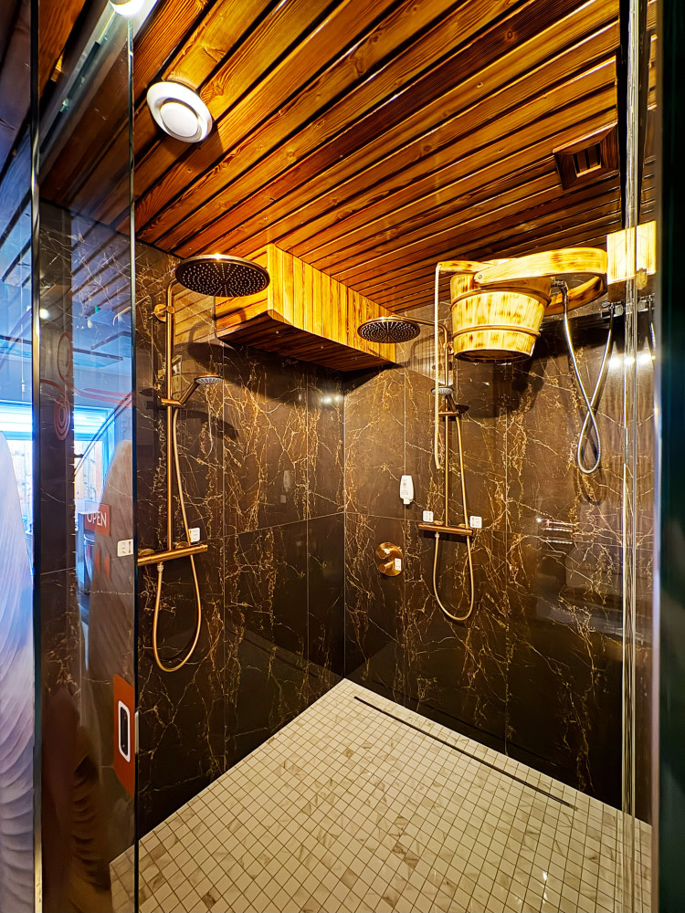 V rámci prostoru wellness je hostům k dispozici sprchová zóna.
